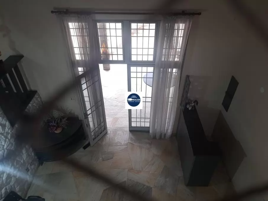 Piso inferior Sala de Tv e varanda voltada para o quintal com churrasqueira.